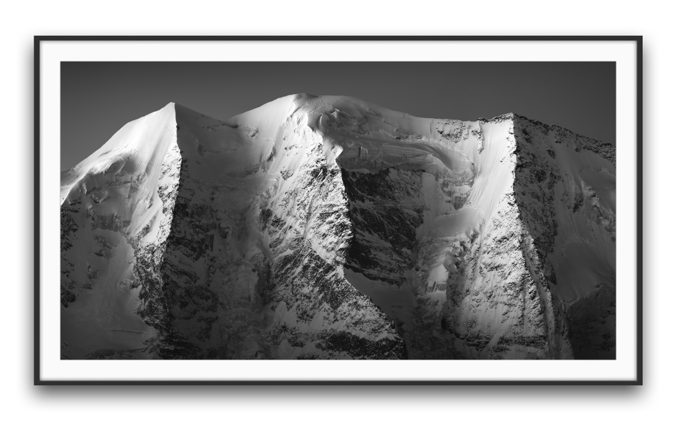 Dieses Werk zeigt den Piz Palü in einer aussergewöhnlichen, beinahe mystischen Lichtstimmung – eine Komposition, die Federico Sette seit Jahren im Kopf trug und nun exakt so umsetzen konnte. Die Präsenz des Berges wirkt im grossen Format fast körperlich spürbar und erfüllt den Raum mit einer kraftvollen Ruhe. Für Federico Sette zählt «Palü» derzeit zu seinen persönlich bedeutendsten und stärksten Aufnahmen des ikonischen Berges.